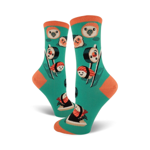 Craving some sushi, but not the calories? Try these Silly Sushi socks instead! They're the perfect combination of food and fashion, with a vibrant green background, orange toe, heel, and cuff, and a pattern of nigiri, maki, and sashimi with smiling faces. When life gives you lemons, eat sushi - wear these socks!