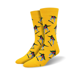 The Skate Life Crew socks will turn you into a pro skater, or at least make you look like one! They're bright yellow with a pattern of a skater dude with a sick green shirt, blue pants, red hat, and shredding a rad red and yellow skateboard. Show off your love for skateboarding with these fun socks!