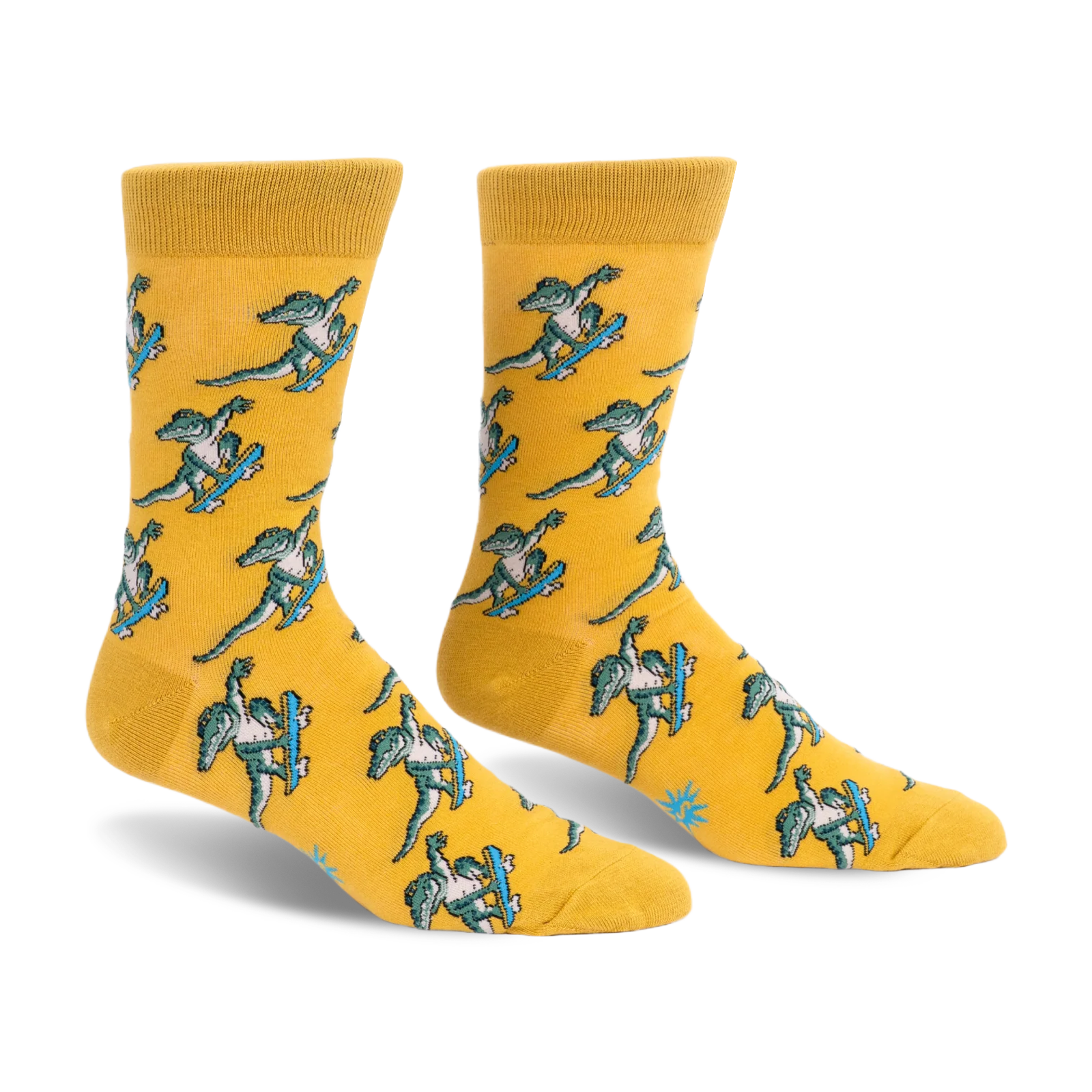 These men’s crew socks bring a skate park scene to your drawer with a croc that looks completely committed to the landing. Repeating skateboarder gators give the pattern a playful rhythm, while the crisp knit keeps the whole thing clean and easy to wear. It’s a fun mix of outdoorsy mischief and streetwear swagger, without trying too hard.