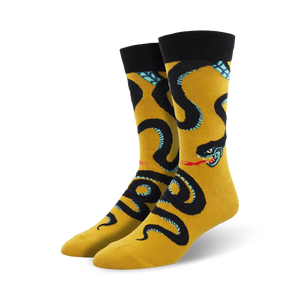 Slither into a pair of Slither Me Timbers socks and let your feet do the talking! These crew-length socks are covered in a pattern of slithering blue and black snakes with red forked tongues. They're the perfect way to add a touch of fun and personality to your everyday look. Plus, they're sure to be a conversation starter wherever you go! So put on a pair of Slither Me Timbers socks and let the good times roll!