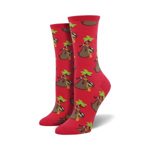 You know you're ballin' if all you do all day is sit in a tree and nap without a care in the world. And the sloth is the biggest baller of the animal kingdom snoozing away the day while the rest of us work meaningless jobs to make ends meet. Rock a pair of these red novelty socks that feature a blinged out sloth hanging on a tree branch
