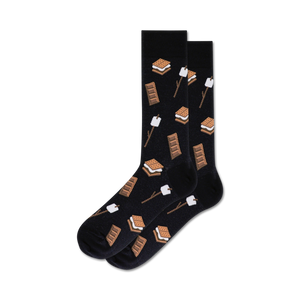 Kick back, relax, and treat your feet to a sweet, crunchy, chewy treat with our Smores socks. Chocolatey, crispy, and marshmallowy, these black crew socks will give you a sugar rush without the calories. Just don't try to eat them!