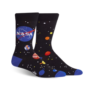 Take a cosmic journey with our Solar System socks! Blast off in style with vibrant planets, stars, and the iconic NASA logo adorning these crew-length socks. Let your feet explore the universe while you conquer the day. Get ready to boldly go where no sock has gone before, and be the envy of every space enthusiast while you're at it.