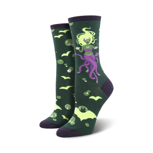 Deep down, we all want to be a mermaid. Sound the Sirens and let these socks be your guide on your undersea adventure! Grab a pair and dive in - our cartoonish mermaid is ready to take you on a deep-sea escapade. Mermaid socks in women's crew length.
