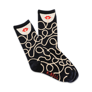 Feast your eyes on our Spaghetti socks! The black and white swirly design looks like a heaping plate of spaghetti. Throw on these crew socks and strut your stuff like the proud noodle you are. And check out that red K. Bell logo ”it's the cherry on top!