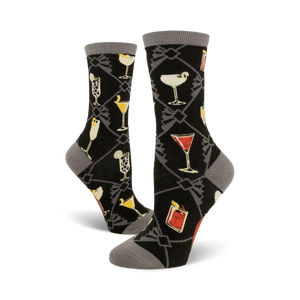 Raise your glass of style with these Speakeasy Cocktail Crew socks for women! Sip on a margarita, savor a martini, and relish a daiquiri, all without leaving your feet. The playful black canvas is adorned with a captivating array of cartoonish cocktails. So next time you're feeling thirsty for fashion, slip into these socks and let the party begin right at your toes.