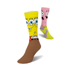 These Spongebob Squarepants and Patrick Star novelty socks are sure to brighten up your day, even if you don't live in a pineapple under the sea. They're bright yellow and brown and long enough to keep your feet warm and protected, but not so long that they'll bunch up in your shoes. Wear these colorful crew socks when you're feeling blue and they'll remind you of some of the best friends a sponge could have. Get a pair today and let your feet be part of the Bikini Bottom crew!