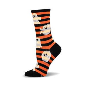 Ghosts have been known to cause a fright, but these playful apparitions are here to charm you with their spirited antics. Perfectly perched on a black and orange striped backdrop, these socks are a delightful mix of spooky and sweet. The ghost patterns arent just for Halloween; they bring a touch of whimsy to your everyday wardrobe. So whether you're lounging at home or out on the town, these socks are sure to add a spirited flair to your step.