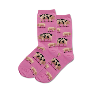 Oink oink! Step into a stylin' pair of "Spotted Pig" socks and let the fun begin! With a vibrant pink backdrop and an adorable pattern of brown and black spotted piggies, these socks are sure to add a touch of whimsy to your everyday look. Show off your love for these charming farm animals and embrace your inner hog wild side!