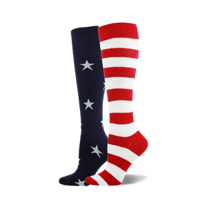 Calling all sock enthusiasts! When it comes to these knee-high Stars and Stripes socks, their knee-high length and smooth fabric will make you feel like you're walking on clouds and looking at a night sky filled with stars. Hey, at least you won't be flying your foot-flag at half-mast when you're wearing these beauties. Grab a pair today because these socks are as American as apple pie and just as satisfying.