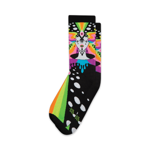 Get stellar in these Stars socks that are out of this world! Put on your trip socks and let your feet take you on a cosmic voyage with these black socks sporting a kaleidoscope of neon shapes. Whether you're a space cadet or just want to add a bit of trippy style to your day, these socks will make your feet the star attraction. Step into these psychedelic socks and let the universe unfurl beneath your toes!