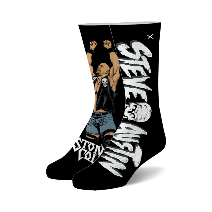 Stone Cold Victory socks are your ticket to the ring for a night of fun and style. Step out with attitude and let everyone know you've got the upper hand. They're perfect if you're not afraid to raise hell or open a can of whoop-ass. So get ready to drop the elbow with your new favorite accessory.