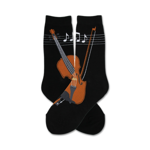 Strut your stuff in these Strings socks that'll make your feet do a joyful dance! Slip into these musical masterpieces, featuring a rhythm of violins and notes playfully dancing across your soles. With their striking black background, your toes will be singing and your heels will be tapping all day long. A perfect harmony for fashion-loving music enthusiasts.