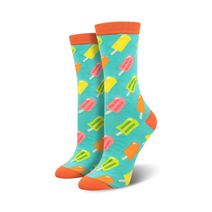 Quench your thirst for fun with our Summer Juice Pops Bamboo Socks! These fruity gems are bursting with juicy popsicles in flavors of pink, yellow, orange, and green, all set against a cool blue background. With these fun, colorful socks on your feet, you'll feel like you're on a beach vacation every day! Don't be surprised if your friends start craving popsicles when you wear them - these socks are that mouthwatering!