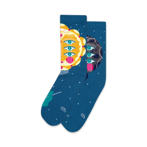 Sun & Moon: These socks are out of this world! They're as striking as a starry night, with suns beaming like they just spotted a shooting star. And the moons, oh the moons, they've got eyes on you, keeping watch over your feet. Whether you're a sun worshiper or lunar lover, these socks will let you match anyone on this planet with their sense of style.