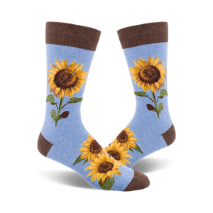 From the depths of blue, our Sunflower Socks bring a ray of sunshine to your feet. With a field of yellow sunflowers blooming against a brown cuff, these socks will brighten your day no matter the weather. Perfect for the flower-loving men in your life, they're a fun, colorful way to add some cheer to any outfit. Socks that bring a smile to your face? Now that's a🌻 idea!