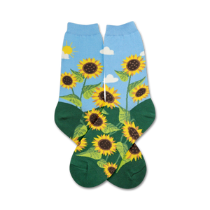 Sunflowers are nature's original smiley faces. Stride down the street in these sunflower socks. The sunny pattern and hues will turn frowns upside down and make you the ray of sunshine in your neighborhood! Let the sun shine on you, even in the dreariest of places.