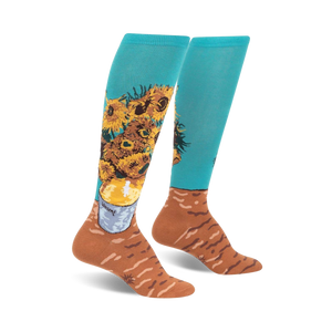 Looking for the perfect pair of socks to brighten up your day? These knee-high sunflower ladies' socks will do just that, with their vibrant design that puts an artistic twist on the classic floral pattern. And with a touch of blue and brown at the heel and toe, they're a colorful reminder that even small details can make a big impact!