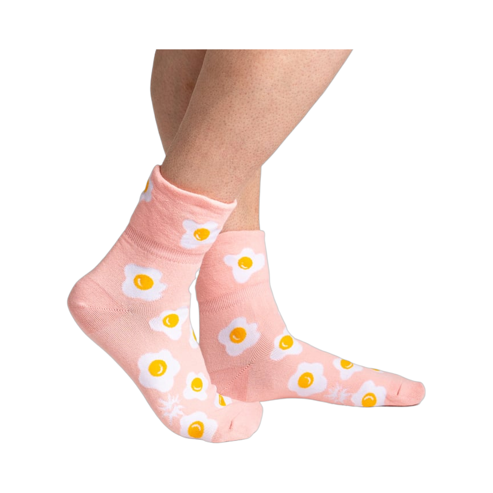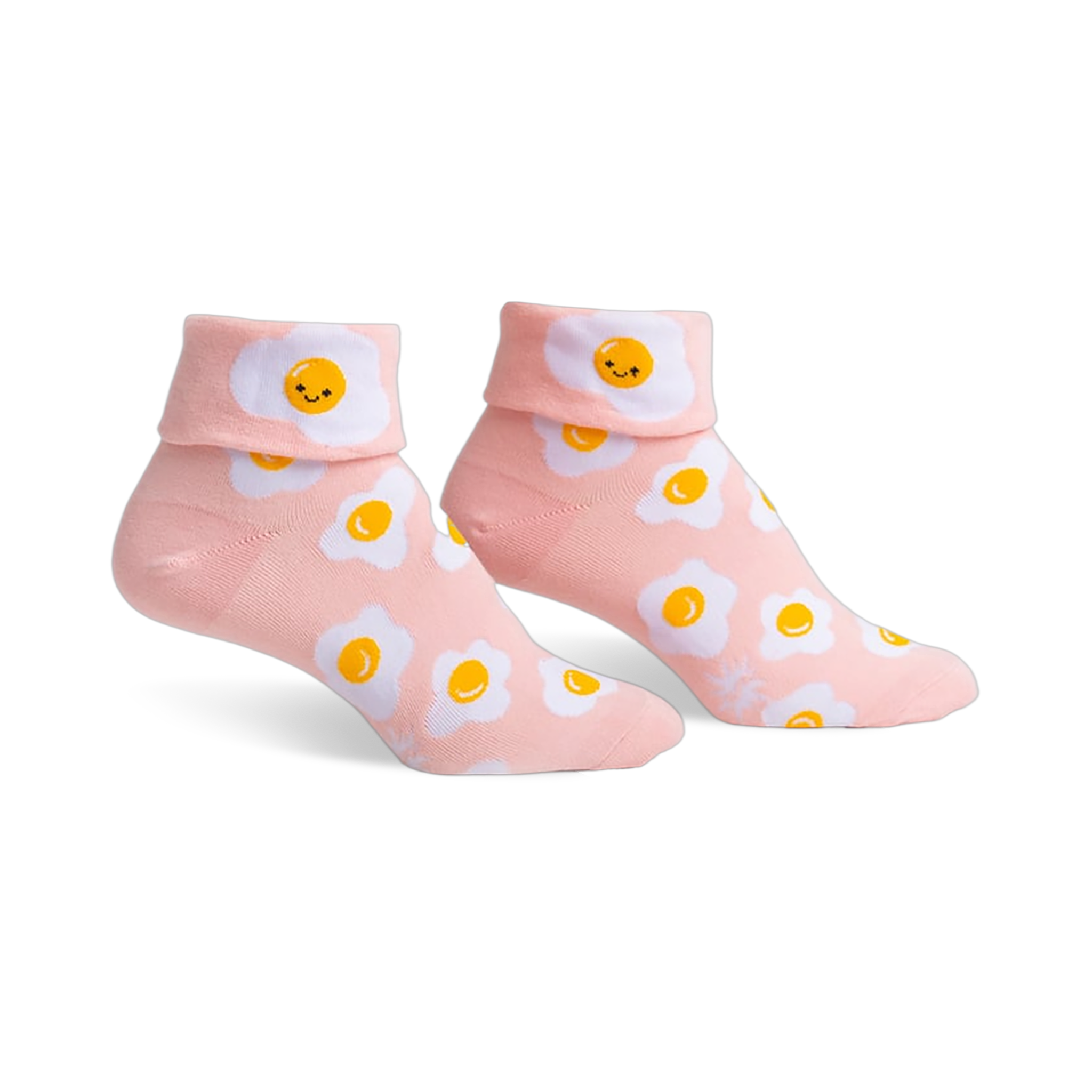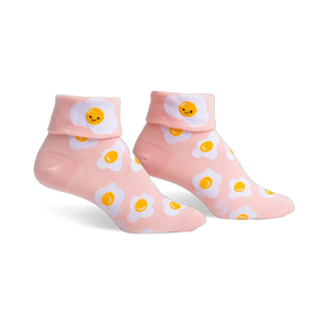 A cheerful pair of women’s crew socks with all the charm of a sunny breakfast plate, these turn cuff socks bring a playful little scene to everyday dressing. The folded cuff gives the design a neat, finished look, while the scattered eggs keep things light and a bit cheeky. It’s the kind of pattern that feels right at home with jeans, lounge pants, or a favorite skirt, especially when you want something fun peeking out above your shoes.