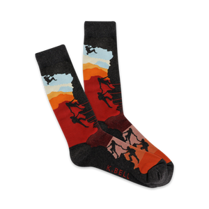 With our Sunset Climbers, every day feels like an adventure! These black, red, orange and light blue crew socks will inspire you to reach the peak of your game, whatever it is. Climb on, fellow fashion mountaineer!