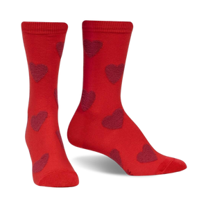 Celebrate your sweet side with our "Sweet Hearts" crew socks. Adorned with vibrant, dark pink hearts set against a classic red backdrop, these comfy companions will make you smile with every step. Perfect for Valentine's Day or any day you want to spread some love, these socks are sure to make hearts flutter wherever you go. Say goodbye to drab, ordinary socks and embrace the playful spirit of Valentine's Day with these charming and cozy heart-covered socks!