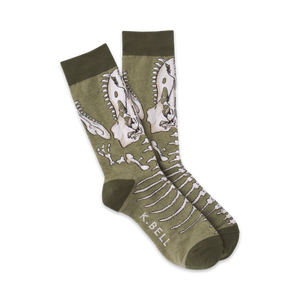 Unearth a truly prehistoric pair of socks to add to your collection. This pair of slate green crew socks features the print of several dinosaur bones with the spine going down to the toes. Whether you are out on a great new adventure to make the next great discovery or you just like dinosaurs, these socks are for you!