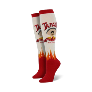 Some like it mild, some like it hot! For everyone else it is hot, hot, HOT! These fun socks are sure to please any hot sauce lover's palette. Each cool pair of off-white and red knee high socks features the iconic Tapatío hot sauce logo on the side of the calf.