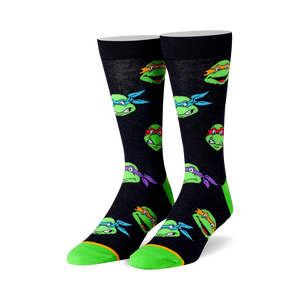 Cowabunga dude! These Teenage Mutant Ninja Turtles socks are tubular. Featuring all four turtle heads in classic 80s retro style, these socks are sure to make you feel heroic. Whether you're bustin' moves at the pizza parlor or fighting crime in the sewers, these socks will have you saying Turtle Power! every time you put them on. Shredder and the Foot Clan don't stand a chance.