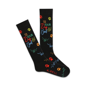 They say a dog is a man's best friend, but did you know that you can send a message directly to your four-legged pal with these Tell Your Dog I Said Hi socks? These playful black crew socks are covered in a colorful pattern of multi-colored paw prints and have the message Tell Your Dog I Said Hi written in rainbow-colored letters. So, the next time you're out and about in these socks, tell your dog nothing but the truth - that you've been thinking about them the whole time! They'll surely appreciate the kind words.