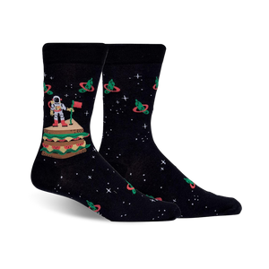 Blast off into the cosmos with these lunar-ific Moon Club socks! Featuring a starry space background and an astronaut munching on a sandwich, these socks will make you the center of the universe. They're out of this world comfortable and perfect for any space enthusiast. Just don't forget to pack them on your next trip to the moon!