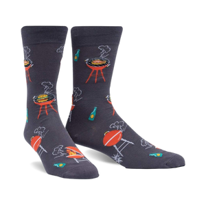 Kick your feet up and get ready to ignite your style with the "The Steaks Are High" novelty socks! Grill master-approved, these gray socks showcase a vibrant pattern of flaming-hot cartoon grills, sizzling burgers, and juicy hotdogs. Add a dash of flavor to your sock game and become the talk of the cookout.