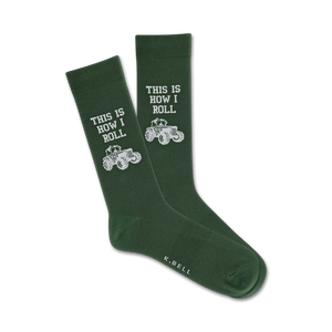 These forest green socks with 'This Is How I Roll' and a white tractor graphic are the perfect way to show off your love of all things agriculture. Whether you're a farmer, a construction worker, or just someone who loves tractors, these socks are sure to get a smile. Fun fact: Did you know that the first tractors were powered by steam? So, if you're looking for a pair of socks that are both stylish and educational, these are the ones for you!