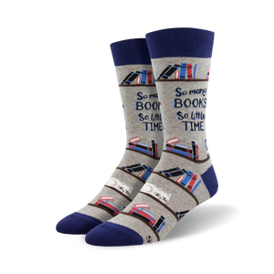 Looking for a literary escape? Put your feet up and crack open a good book with these cozy crew socks. Featuring a whimsical bookshelf design, these socks will make you want to curl up in a comfy chair and get lost in a world of words. With their playful "So Many Books, So Little Time" message, they're a perfect gift for any bookworm or literature lover. Because who wouldn't want to take a few steps into a compelling story wherever they go?