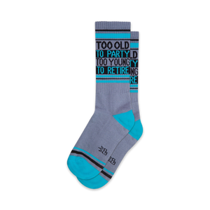 Rock your day with a pair of socks that scream "Too Old To Party, Too Young To Retire" louder than a teenager at a concert! Imagine strutting around, feet decked in these hilarious conversation starters, telling the world you've got the spirit of a spring chicken but enjoy the 9 PM bedtime of a wise owl. Perfect for those who love a good laugh, these socks are your silent shout-out to the fun side of life, proving age is just a number, especially when it comes to humor and style.