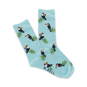 Toucan play at that game, tropical socks with a crew! Adorned with a lush green jungle of palm fronds and toucans, these socks will transport you to a vibrant island paradise. Kick your feet up and let your imagination soar as you explore exotic dreamscapes. On days when you're feeling drab, these socks will add a pop of color and fun to your daily ensemble.
