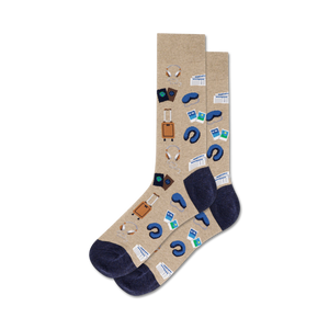 Who needs a boring suitcase when you can wear a pair of these comfy crew socks featuring all your travel musts? Whether you're jet-setting around the globe or just running errands, these cool socks will keep your feet happy wherever you roam.