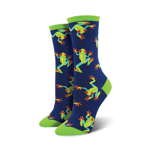 Hop around in these deliciously whimsical Tree Frogs Crew Socks for Women! They're blue like the sky with a hoppin' pattern of bright green frogs with red eyes just waiting to make you smile. Whether you're a frog lover or just looking for a fun pair of socks to add to your wardrobe, these Tree Frogs Crew Socks are sure to be a hit!