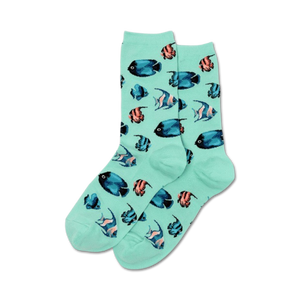 Dive into the vibrant underwater world with these tropical fish socks! Splash around in a sea of mint green and let the burst of blue, orange, and pink fish guide you to a coral wonderland. Who needs scuba gear when you can take an adventure with these fin-tastic socks? Get hooked on these fishy friends and cast a style net like never before!