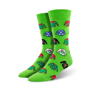 Ring in the holiday spirit with our Ugly Sweater Crew Socks! With their cheerful green hue and an assortment of festive designs, these socks are sure to bring a smile to your face and keep your toes cozy in the winter weather. Whether you're gathering around the Christmas tree or opening presents, these socks will add a touch of cheer to your holiday attire!
