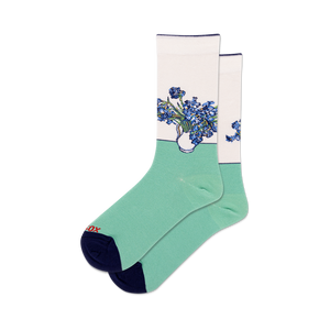 Imagine strolling through a vibrant garden, where Van Gogh's iconic irises bloom at your feet. Our charming crew socks capture this timeless grace, blending art with everyday elegance. With every step, you carry a piece of botanical beauty that's both captivating and subtly enchanting.