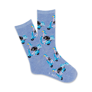 Behold the thrilling "Vespa Ostrich" socks - where ostriches trade their wings for modish blue scooters! Imagine a cavalcade of rosy pink ostriches, bedecked in yellow helmets, zipping through the streets on their trusty steeds, delivering packages with panache. Slip into a pair and let the whimsical design inspire your inner adventurer, reminding you that sometimes, the ordinary can take extraordinary rides.