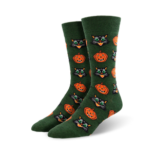 Vintage Halloween Crew Socks: Spooky style meets classic comfort with these black cat and pumpkin socks. They're sure to be a "treat" for your toes this Halloween. Who says black cats and pumpkins are just for October? Strut your stuff in these stylish socks all year round.