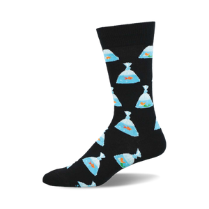 Goldfish swimming in plastic bags might just be the ultimate throwback to childhood days spent at fairs. These socks capture that nostalgia with a playful pattern that oozes charm and aquatic elegance. While goldfish in bags may not be cuddly, they are certainly captivating, just like these socks that celebrate life's simple joys.