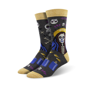 Put on some Wicked Voodoo Bamboo socks and let your feet do the talking. With their day of the dead design, these mid-calf-length socks feature skulls, bones, and flowers in bright colors against a dark gray background, just like you stepped into a Tim Burton movie. And check out that voodoo lettering on the sole. You'll be ready to cast spells and raise the dead with every step.