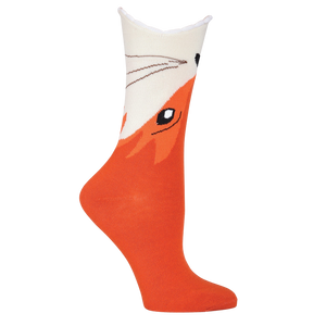 These Wide Mouth Fox orange crew socks feature an adorable cartoon fox face with black eyes, a black nose, and a white mouth. These funny socks are made of cotton and are perfect for the fall season. Show your love of all things foxy and woodsy with this unique pair!
