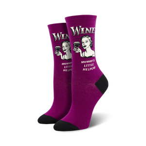 Wine Not Socks: Sip, sip, hooray for these thirsty socks! Featuring a sassy lady sipping on wine, these socks hilariously boast "Mommy's Little Helper" and "Mummy's Little Helper" - a witty play on words for those special nights when you need a little liquid courage. Put your feet up and let the wine do the talking... your socks will do the walking!