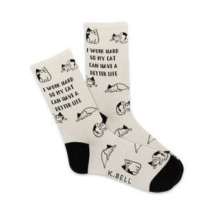 Strut your stuff in these meow-mazing socks, featuring the slogan 'I work hard so my cat can have a better life'. Picture this: you're rocking these bad boys at work, crushing it in your career, all while knowing your furry friend is living the high life back home. It's like a warm, fuzzy feeling for your feet and soul. Plus, who can resist the adorable cat graphics? Talk about a purr-fect way to show your feline fanaticism. Meow!