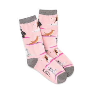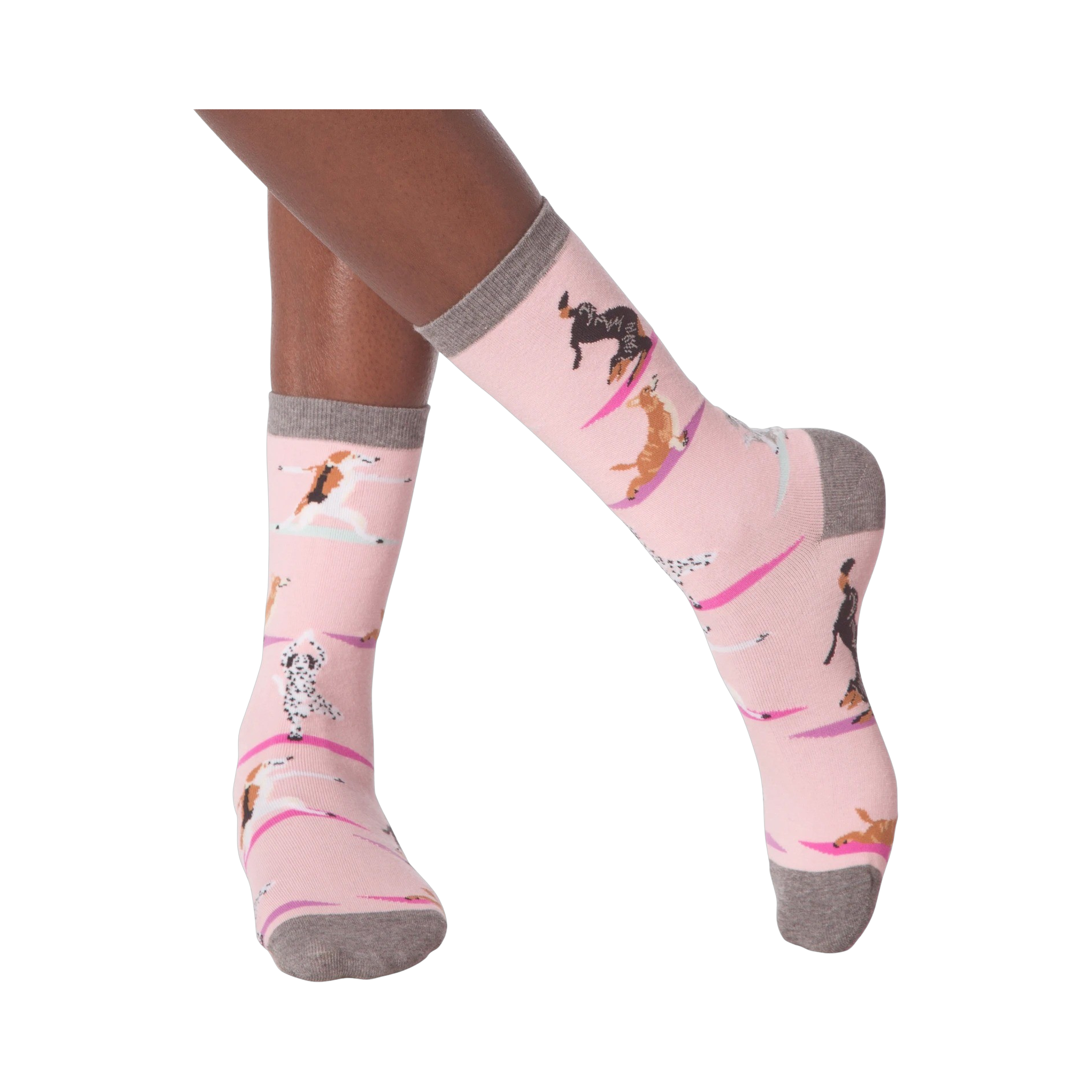 Why not fetch a bone and get a solid work out at the same time? These cool socks are great for any doggone loving yogi! Each funny pair of pink and gray crew socks features several different dog breeds on yoga mats doing poses. Show off your love for dogs and your favorite way to stay in shape.