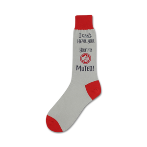 If you're tired of feeling like everyone's talking over you, put on a pair of these sassy socks that politely tell the world, "I can't hear you. You're muted!" With their gray base, red toes, heels, and tops, these crew-length socks for men are sure to get a chuckle from anyone who sees them. Available with the words "I Can't Hear You...You're Muted" emblazoned on them, these socks are perfect for anyone who's ever been on a Zoom call from a noisy coffee shop or had to deal with a particularly chatty coworker.