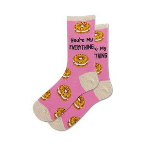 You're my everything bagel socks. Because sometimes just saying 'I love you' isn't enough. Show your special someone how much you bagel them with this fun pair. Brighten their morning by serving them up a side of these bad boys with their cup of joe. Fun fact: Bagels are said to have come about in 1683 in Vienna, Austria. They were originally twisted to resemble stirrups, similar to the ones horse riders wore at the time.